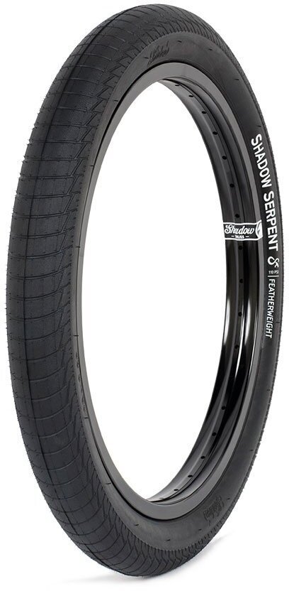 The Serpent Tire is a super lightweight tire, primarily designed for close course park and ramp riding. The high thread count casing lets us use less rubber, resulting in lower rotating weight, giving serious riders a faster and more responsive tire. The custom engineered low profile, directional serpent tread gives maximum grip on transitions, with very low rolling resistance for higher speeds.